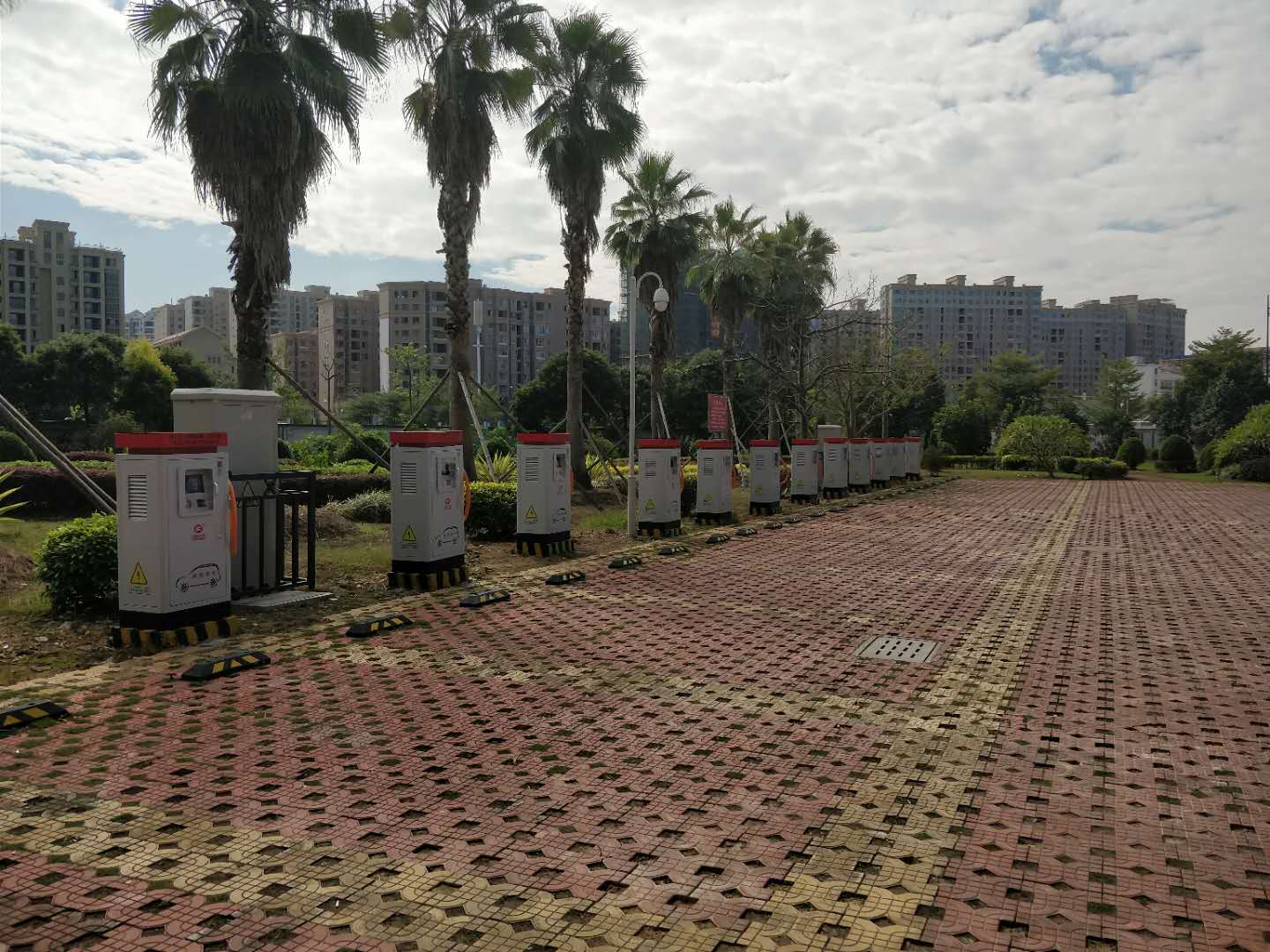 钻石大酒店就坐落于美丽的九龙江畔,是具有现代化设备的四星级度假酒店。配置了20台60KW直流充电桩,目前1-5号桩已上线,其他即将上线,有效满足该区域用户的快速充电需求。